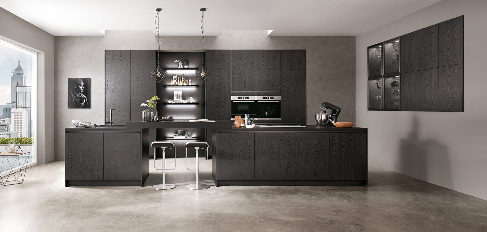 This custom kitchen was designed to maximize functionality while maintaining a sleek and modern aesthetic. The cabinetry features a mix of closed and open storage, with a custom-built island that provides additional workspace and storage. High-end appliances and finishes complete the space, making it both beautiful and practical.